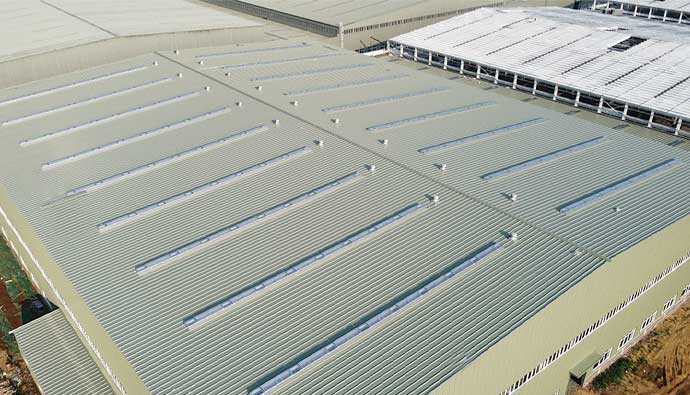 公司主要產品包括各種類型的工業廠房屋面、采光天窗,以及相關配套設施。產品具有優(yōu)異的耐候性能、防水性能、抗風雪能力以及良好的采光效果,可廣泛應用于汽車、物流、煙草、電池、石油、 化工、電力、電子、食品等眾多行業。憑借著先進的生產設備與技術實力,公司在業界樹立了良好的口碑。